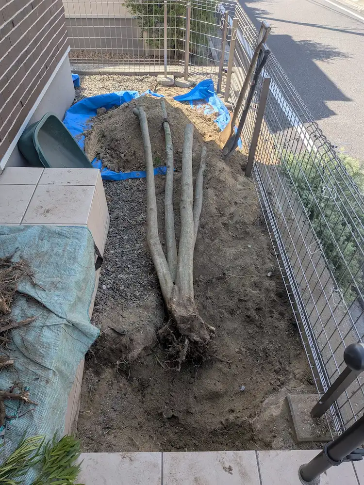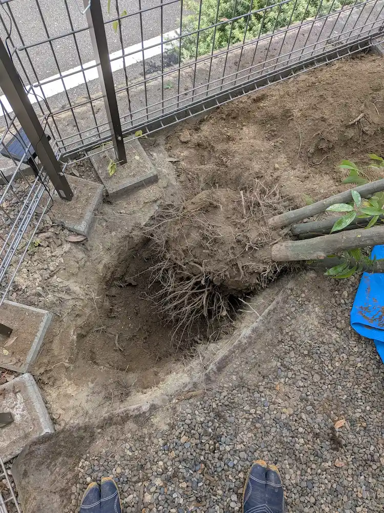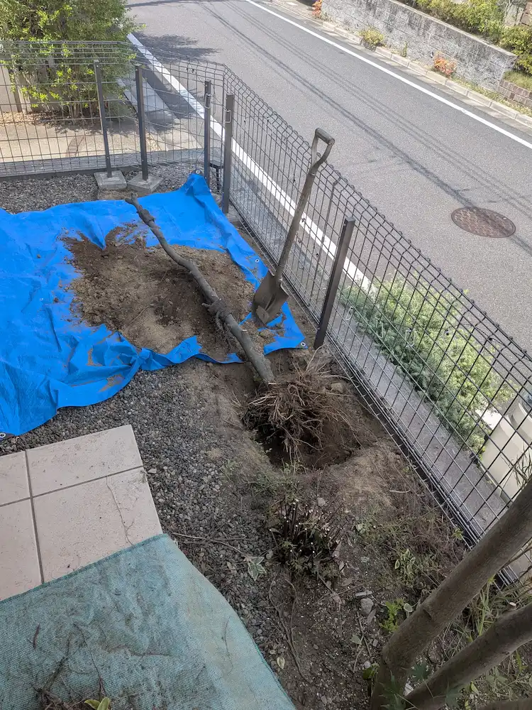 植木屋涼風は、お客様が今後スムーズに植栽を行えるよう、特に根の完全な除去にこだわった抜根作業を実施しました。
