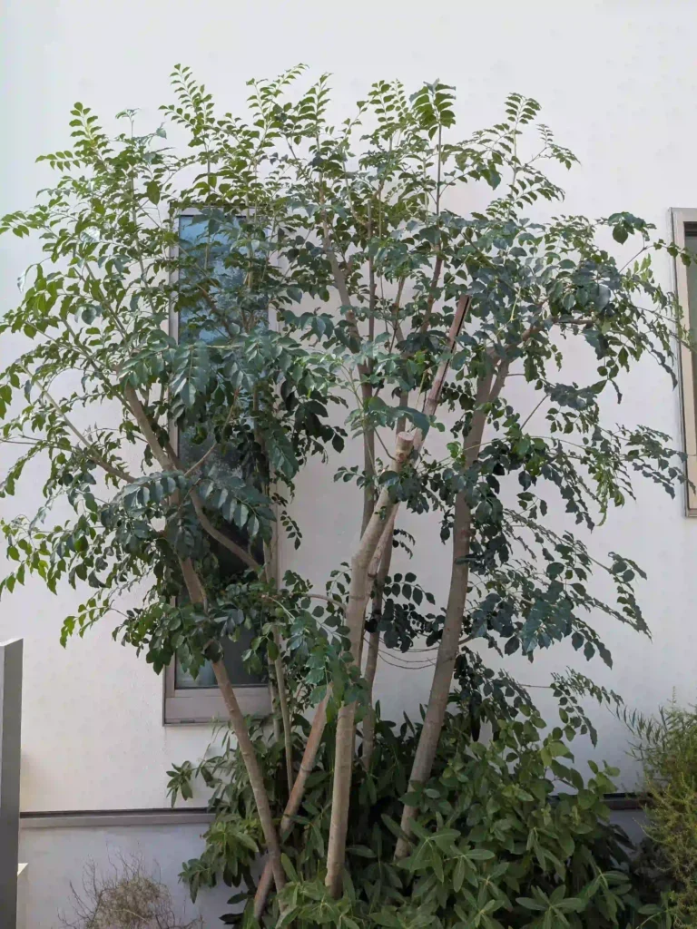 植木屋涼風は、シマトネリコの将来の樹形を見据え、軽やかな株立ちの特性を活かした剪定を実施しました。